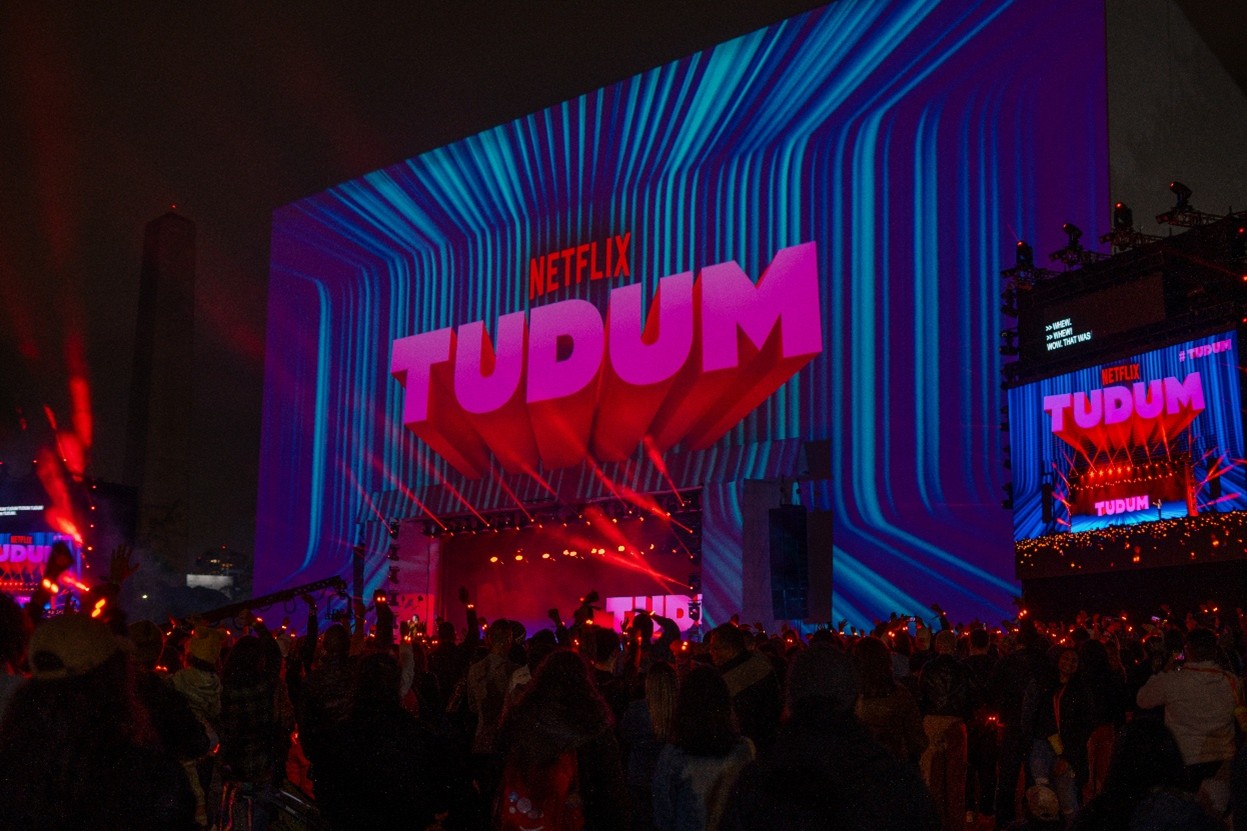 With our full tech solutions, NETFLIX TUDUM is a hit year after year. At the Ibirapuera Auditorium, the facade comes to life with a stunning projection mapping by MAXI. International stars like Arnold Schwarzenegger engage with the audience, creating unforgettable moments of pure excitement.